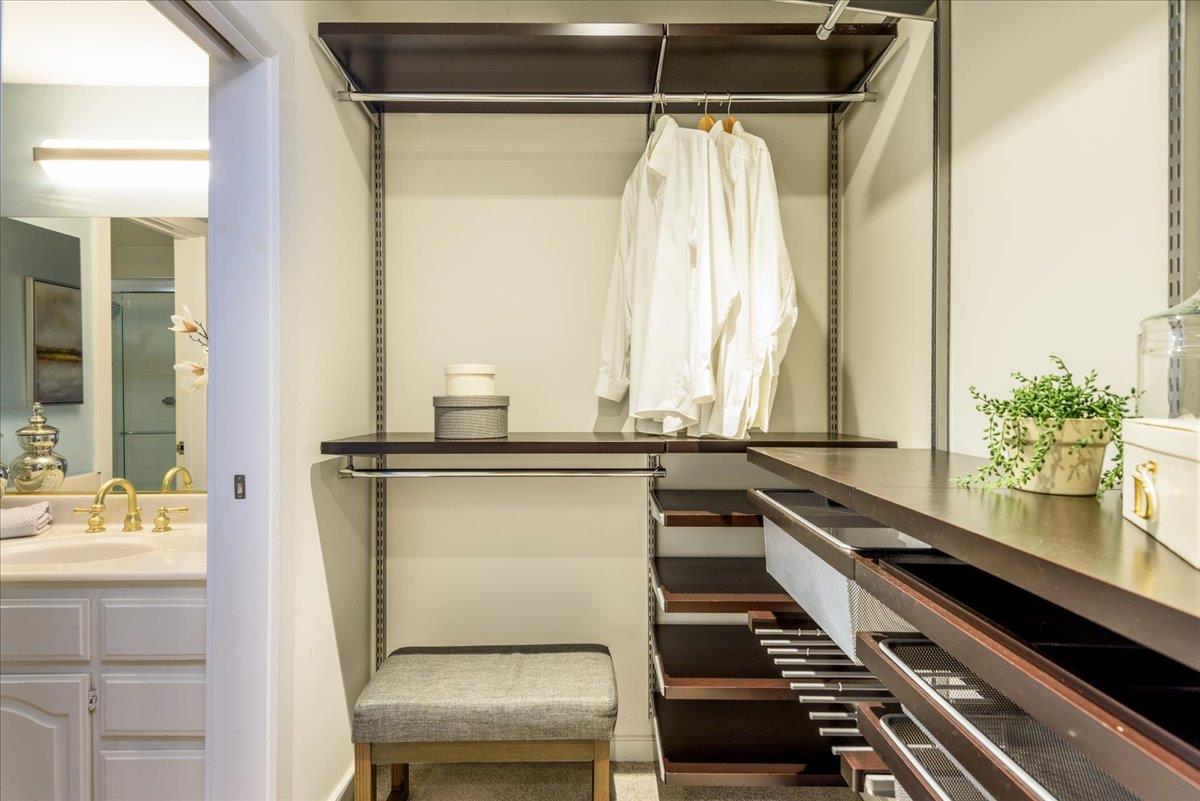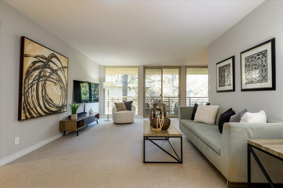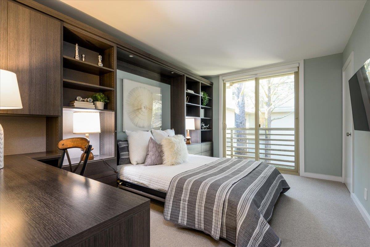 Refer to the Sharon Heights Golf and Country Club as your neighbor. This location offers a feeling of living in a highly appointed neighborhood with a security gate to enter the premises and a long private road accented with views of the golf course and mature tree lined road. The welcoming floor plan opens to a formal entry way and spacious living and dining area with a generous size outdoor patio with friendly redwood trees that compliment the views. The primary suite has an amazing off the charts walk in closet. The community provides a tranquil setting with a sparkling pool and covered parking with 2 reserved parking space, as well as acclaimed Las Lomitas schools. All of these features plus it is located to close proximity to downtown Menlo Park and Palo Alto as well as Stanford University, Sand Hill Road, and commute routes. Very close proximity to Sharon Heights Shopping Center.