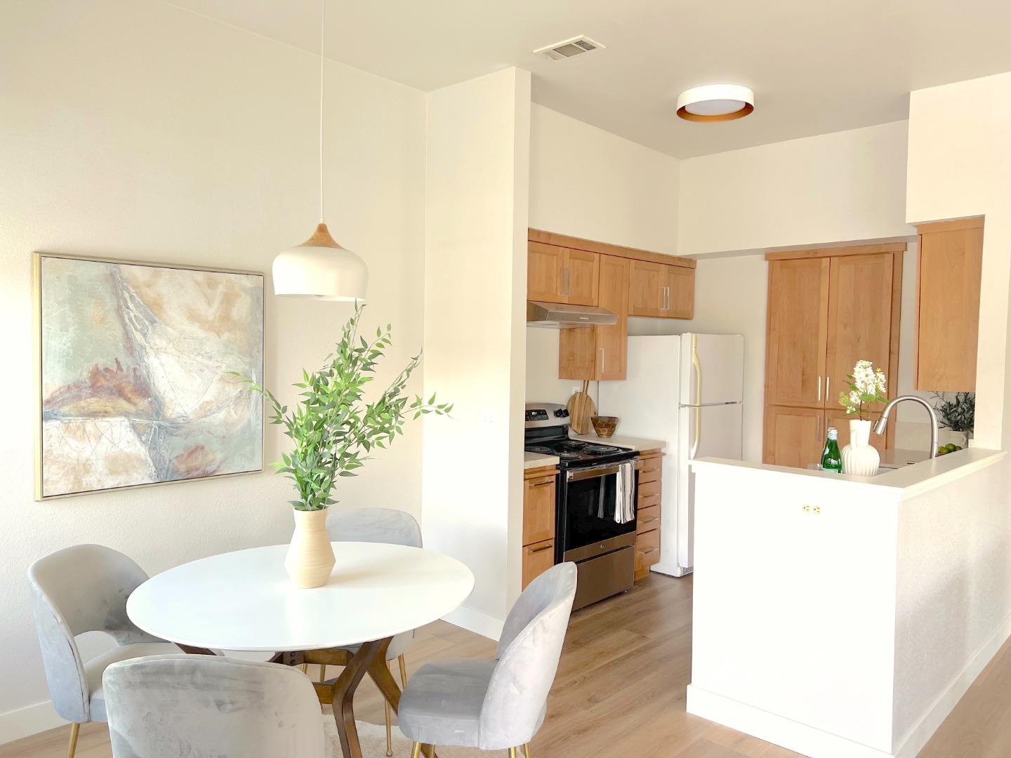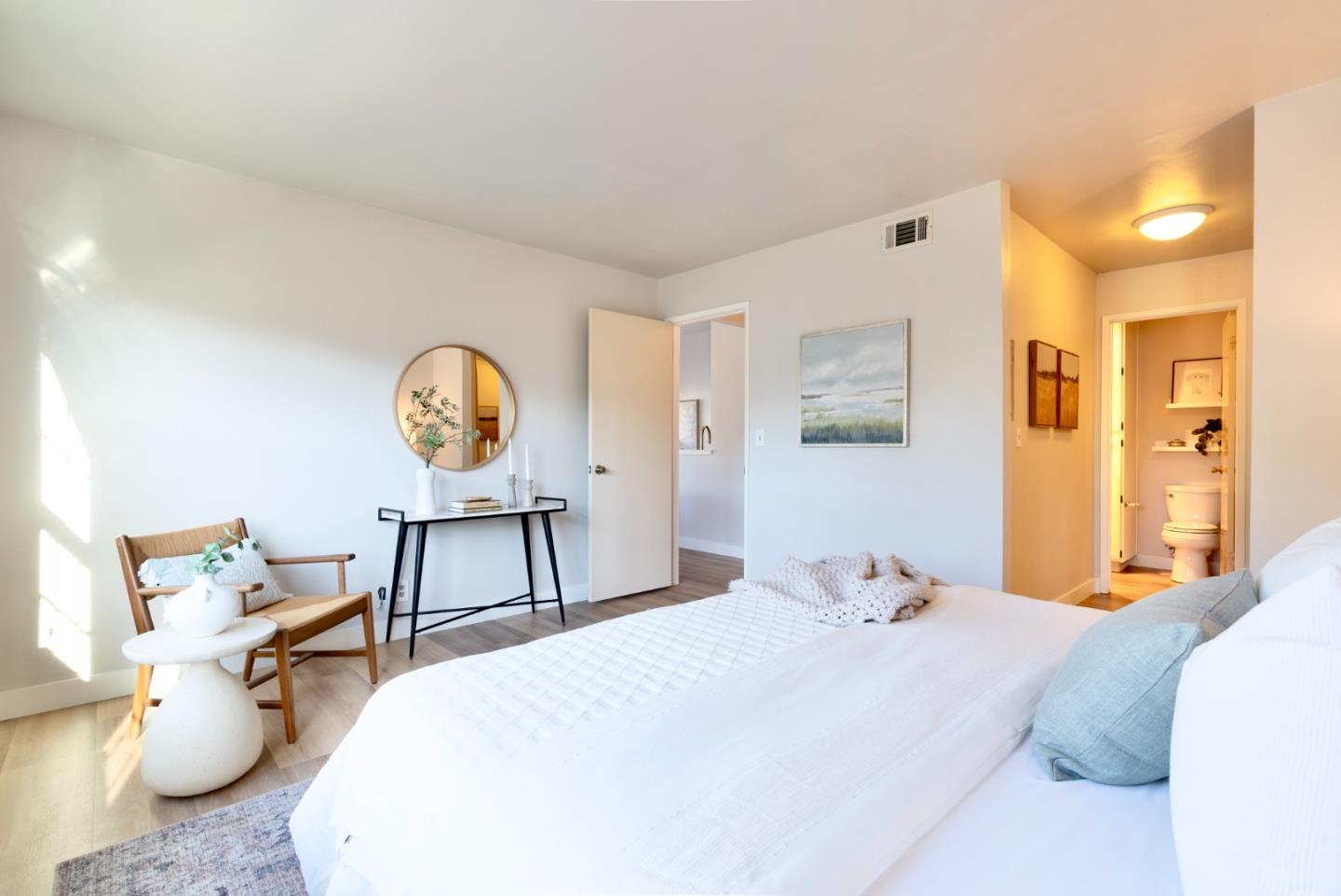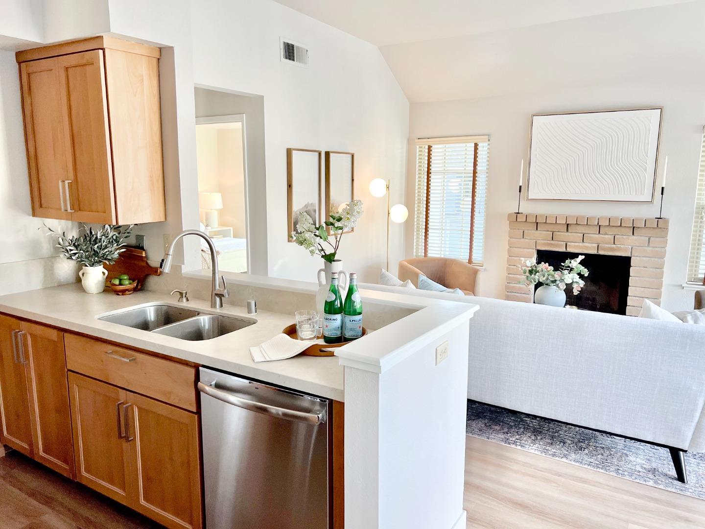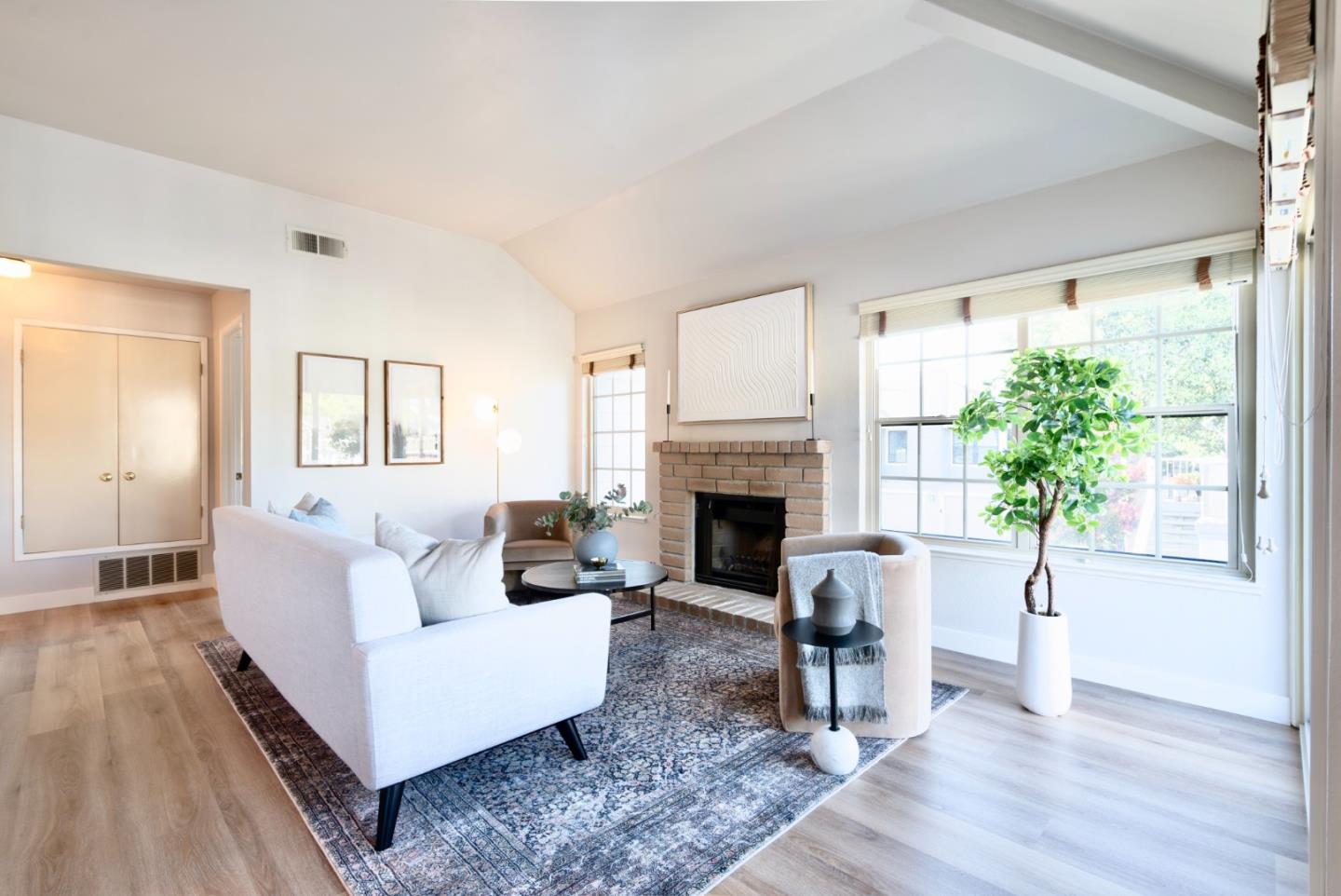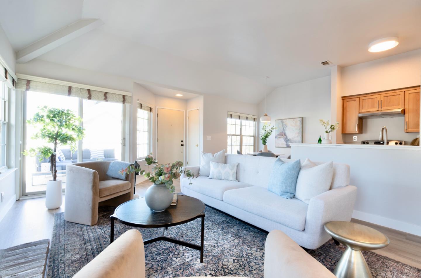 Foster City energy at San Mateo prices. Enjoy this remodeled top floor end corner unit townhome that is light and bright with the warmth and enjoyment of your own private spacious deck. With vaulted ceilings and an open and welcoming layout, the upgrades to kitchen, flooring, lighting and paint (no popcorn ceilings) throughout, make this 1 bed 1 bath feel every bit of home. With only one shared wall that is on the kitchen and bath side, you will have every bit of privacy you seek. Washer and dryer is in unit. Your own garage is located just below, where you can park and have room to store. Centrally located, you have all the key shops and amenities within 5 minutes. Your commute in any direction is well accessible (101/92), with local routes available to avoid freeways if needed. In addition, the community is tucked away from the main roads, so when you return home, you can take full advantage and recharge with the walking paths, waterways, pool and peaceful surroundings.