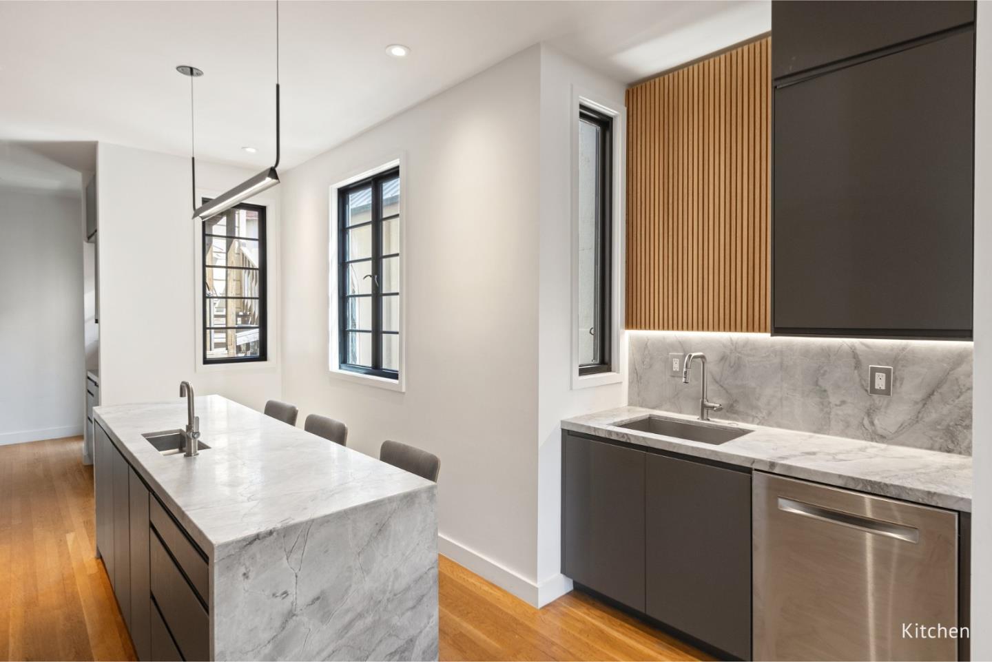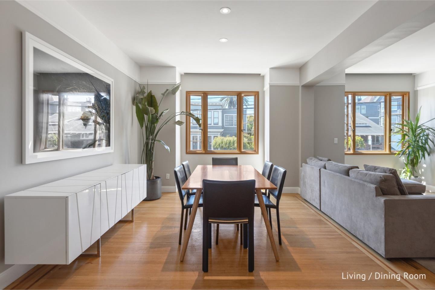 Contemporary modern 3 unit bldg in Inner Richmond, 3 blks fr GG Park/2 blks fr Clement St. Re-envisioned by notable architectural firm, crafted for daily + entertaining. Multi generational living at its best; oppty to live, work + generate income in one bldg. Upper/middle floors same layout - 2 bed 1.5 bth w/ view sunroom+south facing living rm. All upgraded structural, electrical, plumbing, split system ducted heating, baths, modern fixtures + Carrera marble features. Diff btw upper+middle is kitchen reno, custom oak cabinets, island w/ Brazilian Quartzite, Bosch appliances+rear view deck. Ground flr is 2 bed, 2 full bth modern showpiece, 17ft ceilings, 10ft folding glass doors open into ferns, sweeping conifers, mature palms+Redwood seating. Gas/water ready for firepit/kitchen. Unit can be used small office/event via side entry. Notable: engineered oak+Warmboard radiant flrs, custom flamed/honed black granite stairs/kitchen, acero limestone, custom oak cabinets, Fisher & Paykel/Miele, California Closets, Lutron lighting+gas/air vent fireplace ready. Restored art deco facade w/ steel entry doors. Washer/dryer in upper flr + in 2 car garage w/ storage and Tesla charger. 10 mins fr ocean, city center+Golden Gate Bridge, this bldg is the heart of San Francisco living.