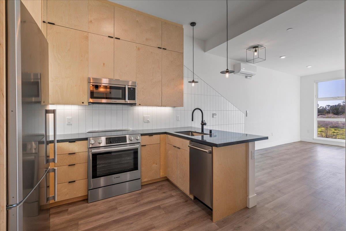 Welcome to flexible, turnkey, modern living in this exceptional live/work condo in the popular lower Westside Santa Cruz. This attractive 3-level unit features a ground-level, flexible commercial space with a concrete floor, frosted glass roll-up door, separate office/bonus room, full Bathroom, and large storage closet. The second floor features a modern kitchen with a breakfast bar and a light-filled living area. There is also a half-bath and laundry on this level. The third level features a bedroom, full bath, and a rooftop patio with beautiful west-facing sunset views. The location can't be beat. It is a short walk to West Cliff Drive, Natural Bridges State Beach, several restaurants, breweries, coffee shops, and world-class surf spots.