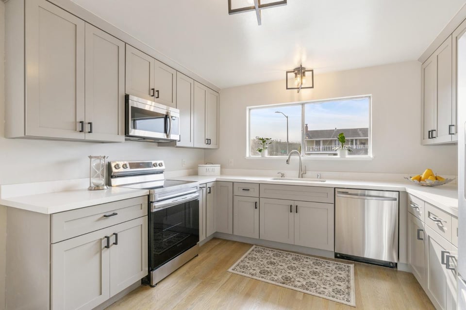 Nestled on a quaint street in the Westborough neighborhood this classic three bedroom, two and a half bathroom home has been freshly updated throughout incorporating a warm blend of classic and contemporary styles. The floor plan is comprised of a light-filled living room with wood burning fireplace and large windows, dining area and newly remodeled eat-in kitchen with quartz counter tops, modern grey shaker cabinetry and stainless steel appliances. The completely renovated bathrooms and bedrooms are ideally located on the upper level, providing a tranquil retreat. The lower level provides a sprawling family room with plenty of space for a home office, play space or fitness area, including a remodeled half bathroom and access to the rear yard, which offers a multitude of opportunities for personalization and enjoyment. Some of the interior updates include hardwood floors that have been refinished with a rich, sophisticated hue, new light fixtures, hardware and fresh paint.
