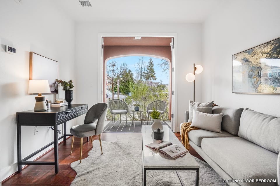 Sunny Paddock Park views welcome you to this Bay Meadows home = bonus expansive "front yard" and playground AND no direct neighbors for added privacy! Enter into a spacious foyer + find a full bedroom/bath on the ground floor w/ out-swinging french doors - a proper home office, au pair, guest floor is a reality. Living room balcony overlooking the park provides indoor/outdoor living w/ warm southwest exposures. An extra-long kitchen island w/ GE Monogram appliances incl gas cooktop allows you to entertain/gather freely and provides flexibility for interior design. All bedrooms en-suite, rooftop views, sun-drenched + significant w/ healthy closet space. European hardwood + engineered floors + 2 car side-by-side garage w/ integrated storage + rack system. In-garage AND front door water faucet makes cleaning cars, gear, dogs + kids easy. Walkable to 4 neighborhood parks, Whole Foods, Crunch Fitness, Blue Bottle, Shake Shack, Hillsdale Mall + Caltrain.