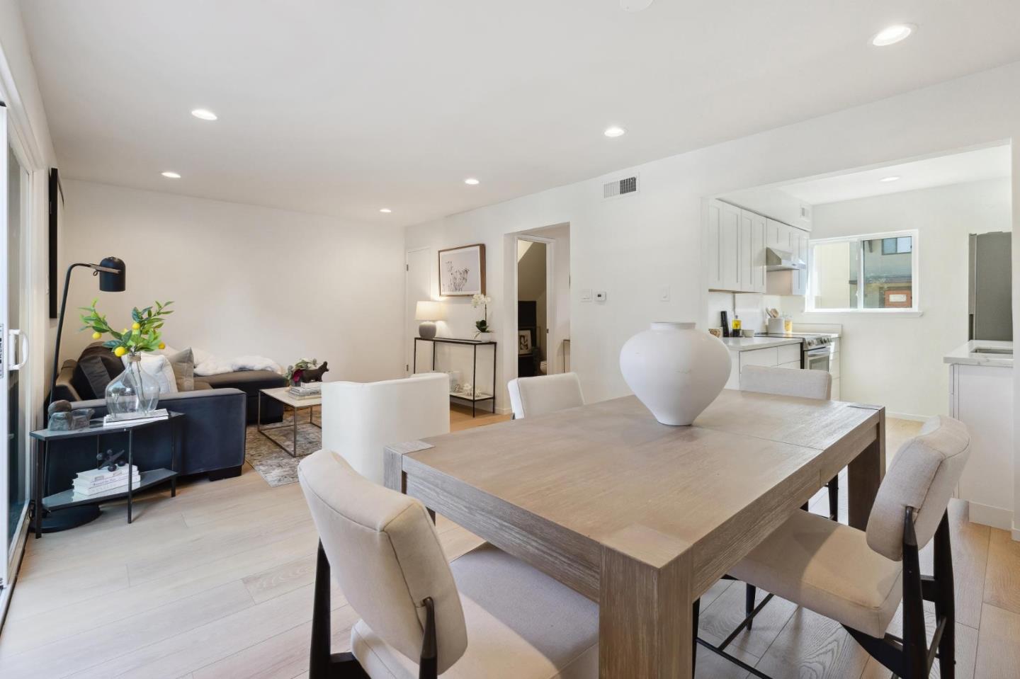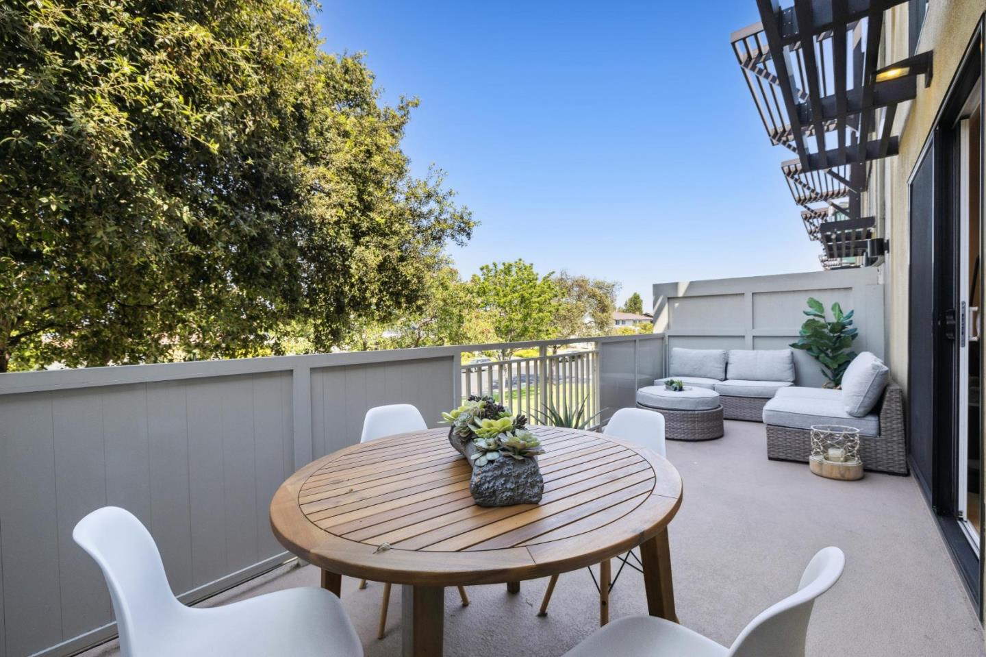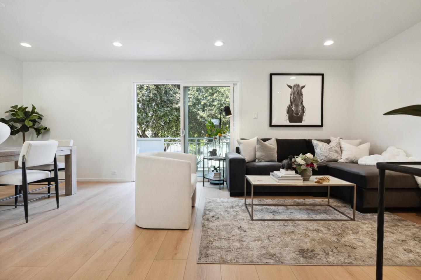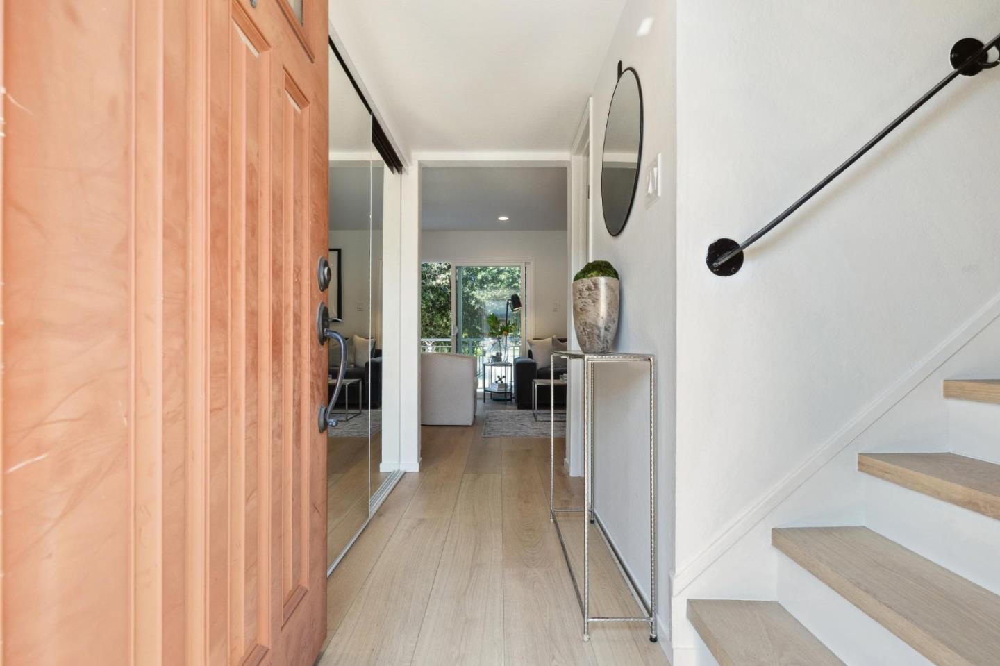 Open the door to your new home in this top floor upgraded townhouse style condo in Foster City! Boasting warm white oak color high density flooring, and recessed lighting throughout, nestled in the ideal locational for Foster City. Upgrades include new kitchen cabinets, quartz countertops, and electric appliances. Freshly painted throughout with new bathroom vanities and downstairs toilet. Two tranquil outdoor areas, one with a large back balcony that faces the desired tree lined neighborhood on Comet Street. Community has two heated pools, tennis courts, sauna, and community laundry. This unit has 1 assigned parking spot and 1 extra storage unit.