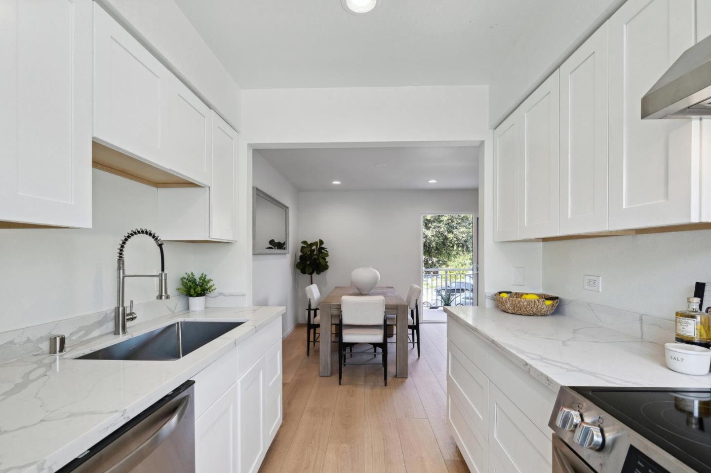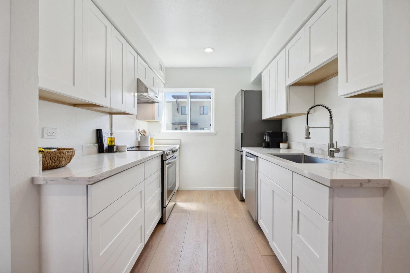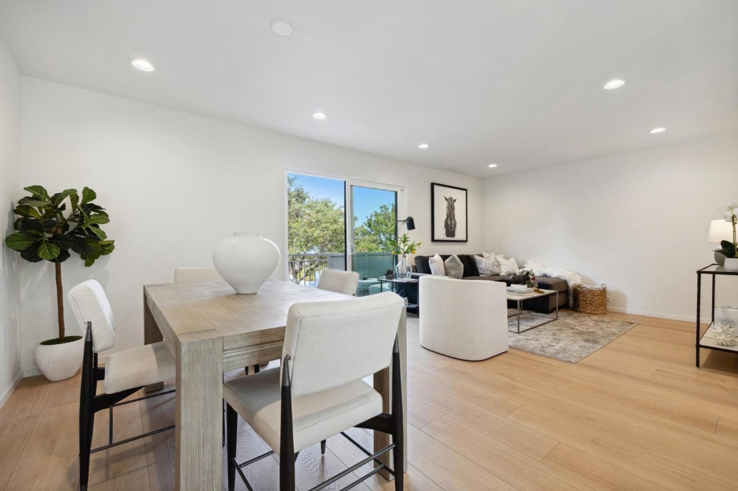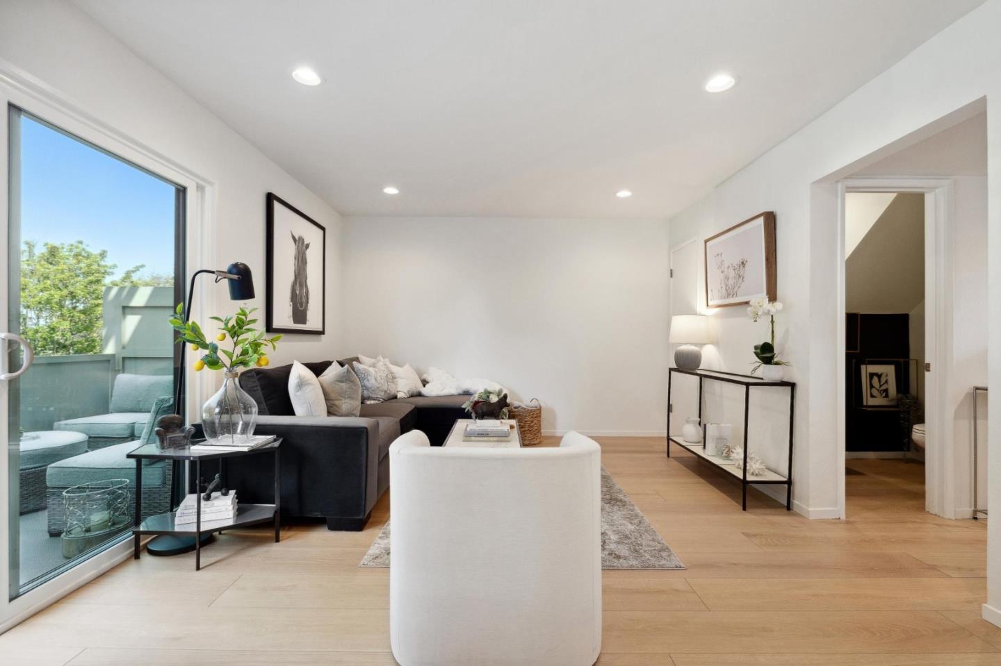 Open the door to your new home in this top floor upgraded townhouse style condo in Foster City! Boasting warm white oak color high density flooring, and recessed lighting throughout, nestled in the ideal locational for Foster City. Upgrades include new kitchen cabinets, quartz countertops, and electric appliances. Freshly painted throughout with new bathroom vanities and downstairs toilet. Two tranquil outdoor areas, one with a large back balcony that faces the desired tree lined neighborhood on Comet Street. Community has two heated pools, tennis courts, sauna, and community laundry. This unit has 1 assigned parking spot and 1 extra storage unit.